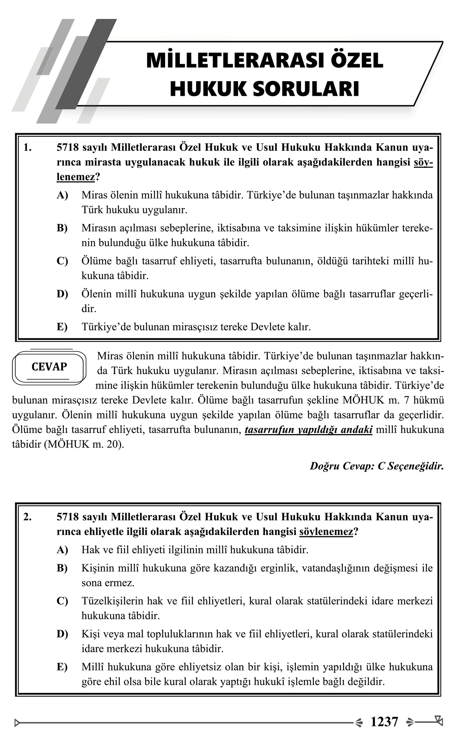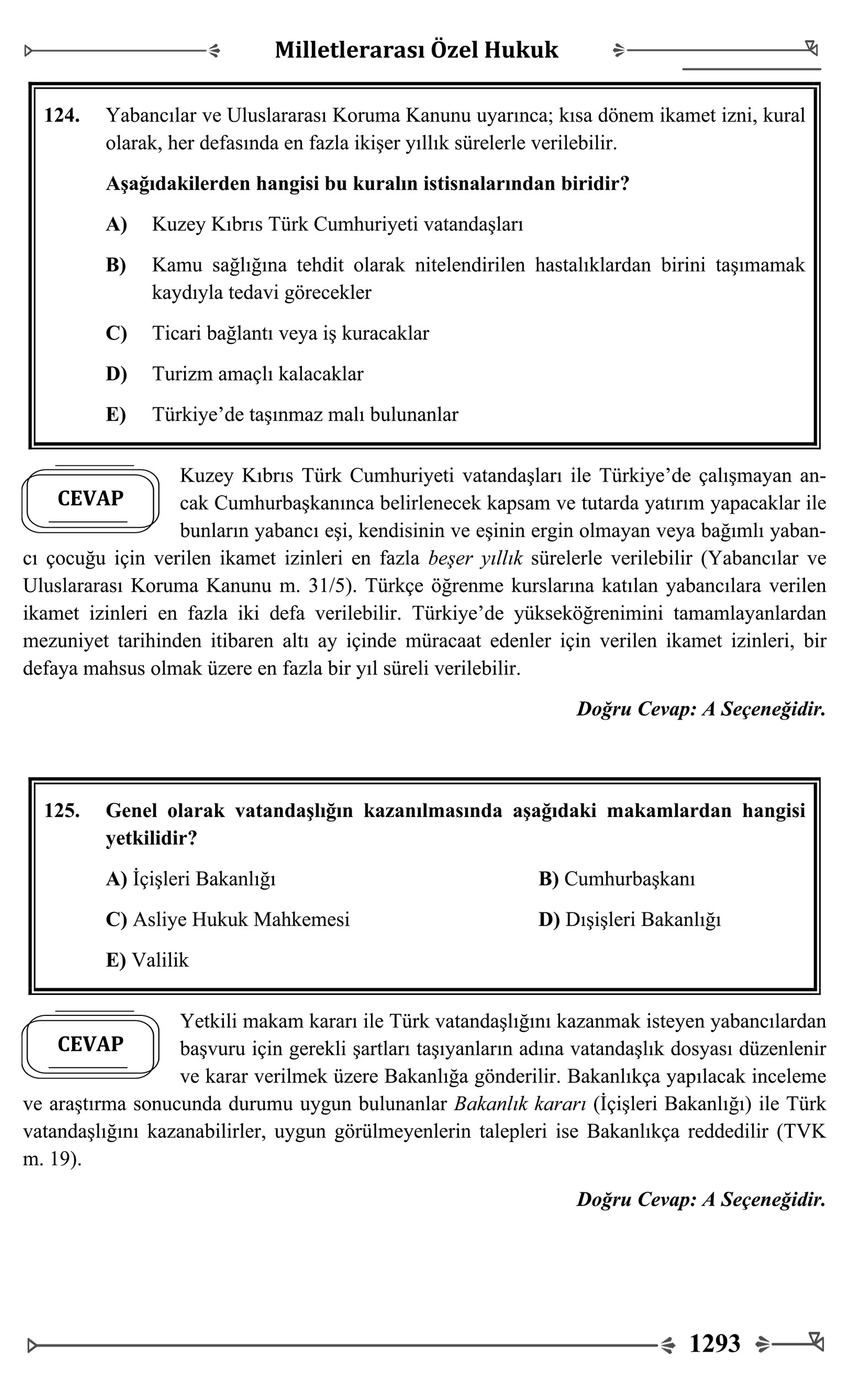 – MİLLETLERARASI ÖZEL HUKUK 125 SORU