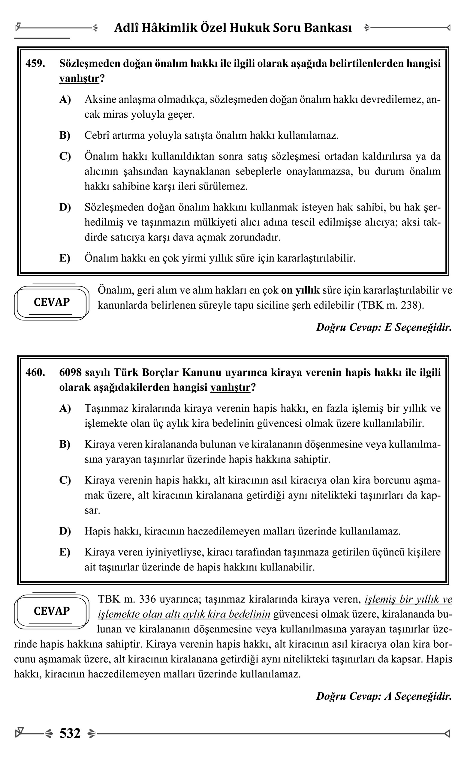 – BORÇLAR GENEL-ÖZEL HÜKÜMLER 460 SORU